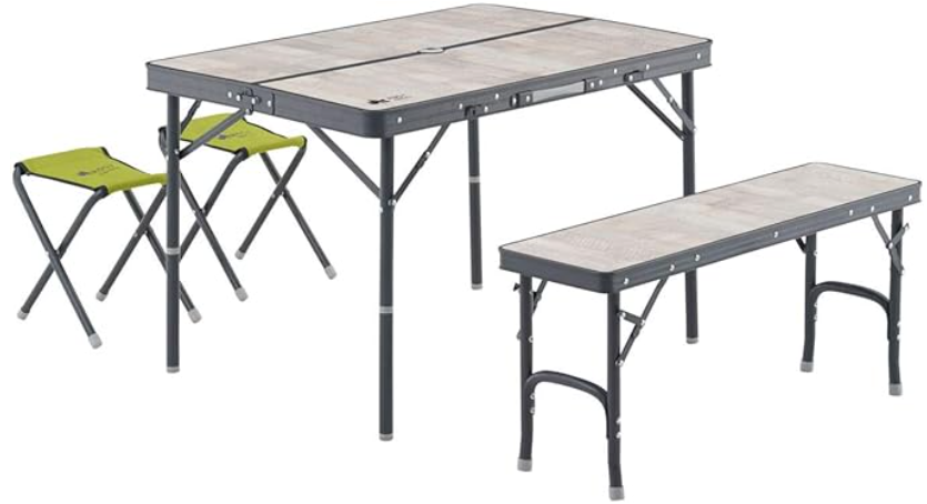 デイキャンプなので、背もたれが無いタイプで、テーブルとイスがセットのもので、供のイベントでも使えるものを選びました。