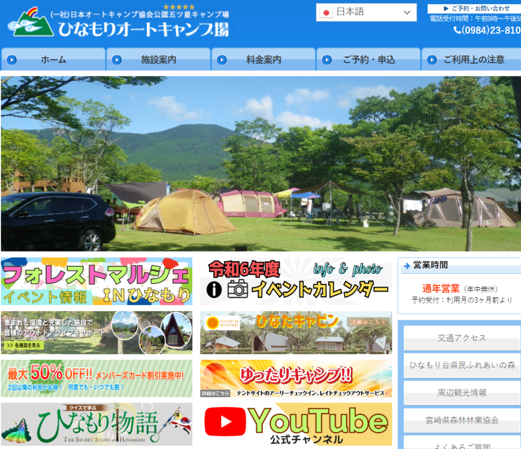 宮崎県のひなもりオートキャンプ場は、静岡県に佇む自然の宝庫。静かな山々に囲まれ、広々としたキャンプサイトが特徴です。